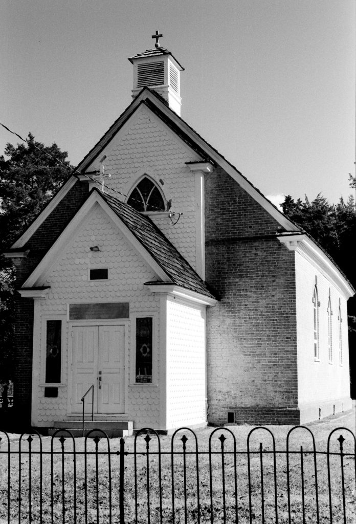I lost detail right of the entrance on this picture. The sun was shining bright on the right side of the church. The wooden shingles are no longer visible.